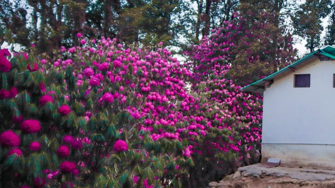 During Buransh season, the climb feels like walking through a live painting, with flowers blooming on either side of your path.